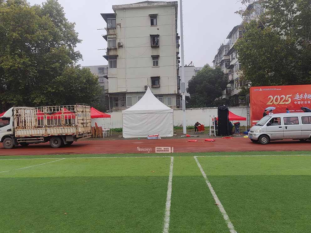 平頂山篷房租賃精準(zhǔn)把握中國(guó)農(nóng)業(yè)發(fā)展銀行湖北分行職工運(yùn)動(dòng)會(huì)的活動(dòng)特性,以尖頂篷房、折疊帳篷、桁架、折疊椅、道旗等物料,通過(guò)科學(xué)布局為運(yùn)動(dòng)會(huì)打造出“功能清晰、氛圍熱烈、服務(wù)周全”的場(chǎng)地空間,助力活動(dòng)有序開(kāi)展。 平頂山篷房租賃巧妙運(yùn)用色彩與造型的搭配,讓篷房成為運(yùn)動(dòng)會(huì)現(xiàn)場(chǎng)的視覺(jué)亮點(diǎn)。白色尖頂篷房選用高密度PVC篷布,單頂直徑5米、高度4.5米,造型輕盈雅致,主要分布在場(chǎng)地核心區(qū)域。紅色折疊帳篷則采用醒目亮眼的紅色牛津布頂篷,3米×3米的規(guī)格靈活便捷。 桁架、折疊椅、道旗等物料的協(xié)同配合,為運(yùn)動(dòng)會(huì)提供了全方位的功能支撐。桁架搭建在運(yùn)動(dòng)會(huì)場(chǎng)地中心,表面覆蓋印有“中國(guó)農(nóng)業(yè)發(fā)展銀行湖北分行職工運(yùn)動(dòng)會(huì)”字樣的噴繪布。折疊椅輕便實(shí)用,布置在白色尖頂篷房?jī)?nèi)的休息區(qū)與賽事觀禮區(qū)。道旗則沿運(yùn)動(dòng)場(chǎng)周邊道路兩側(cè)整齊排列,印有農(nóng)發(fā)行l(wèi)ogo,3.5米的高度在風(fēng)中舒展,形成引導(dǎo)人流、烘托氛圍的“動(dòng)態(tài)風(fēng)景線”。 平頂山篷房租賃為中國(guó)農(nóng)業(yè)發(fā)展銀行湖北分行職工運(yùn)動(dòng)會(huì)打造了一套全方位的布場(chǎng)方案。這套方案既滿足了運(yùn)動(dòng)會(huì)對(duì)功能分區(qū)、氛圍營(yíng)造的需求,又充分考慮了職工的參與體驗(yàn),讓運(yùn)動(dòng)會(huì)在熱烈有序的氛圍中展現(xiàn)團(tuán)隊(duì)凝聚力。